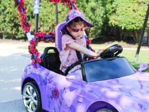 August 2022: Celeste gets behind the wheel of a Go-Baby-Go Car, a customized battery-powered car for children with limited mobility to promote play and socialization.