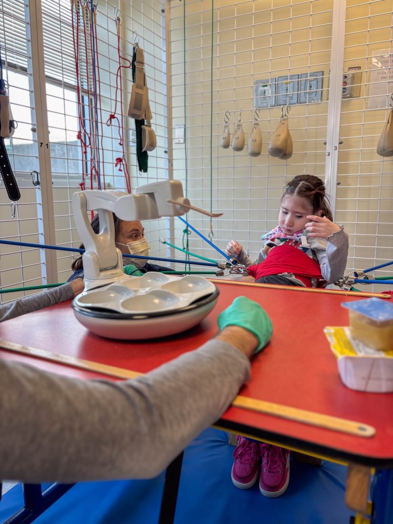 February 2025 – Celeste stole hearts during the summer of 2022 as she drove away in her purple GoBabyGo adaptive car and flower-patterned hat, fueled by pure determination. Now, she’s back, using a new mode of independence: the Obi self-feeding device.