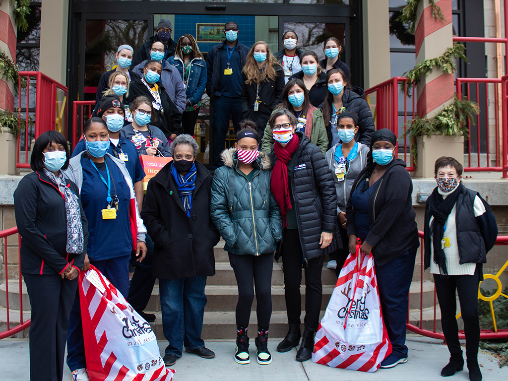 Mayor Lightfoot also continued a longstanding tradition of reading to our patients The Night Before Christmas. This holiday event has been carried out by numerous Chicago mayors over the years. To maintain our COVID-19 safety measures, Mayor Lightfoot recorded their storytime and the video played throughout the hospital for patients to enjoy.