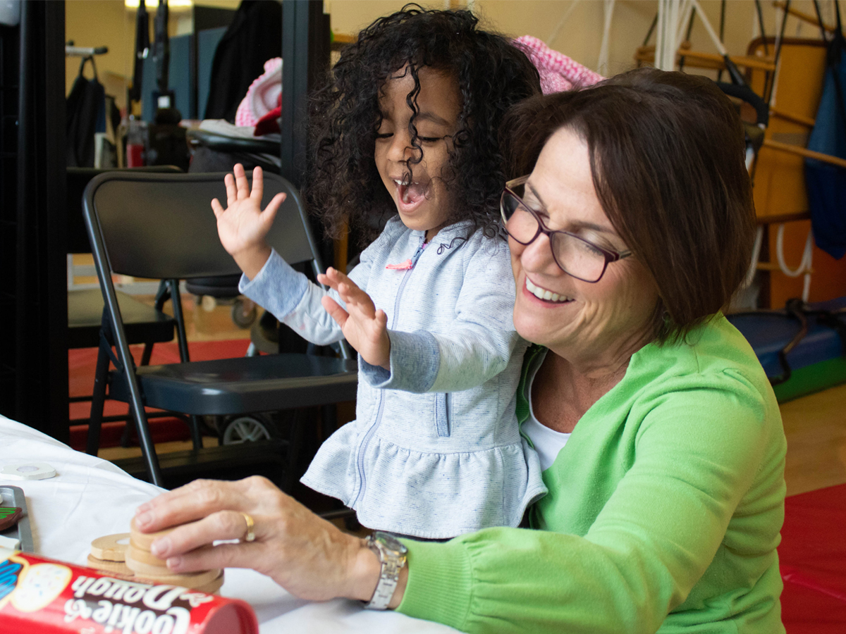 “Margie shows us how to do all of the exercises at home. We don’t have all of these balls and tools, but she taught us how to mimic the movements with pillows and things around the house,” said Isabella. “She makes it fun for both of us. It’s important to me that Calliope likes her therapist, and she loves Margie.”