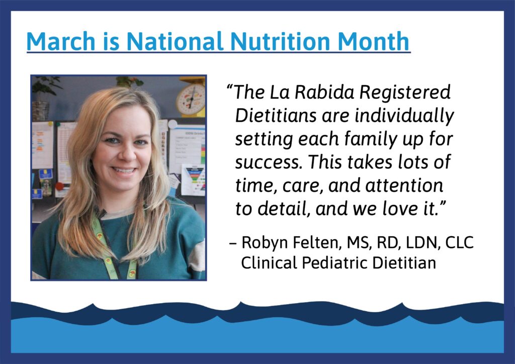 They created a plan to ensure Jessica had enough nourishment to not only meet her daily functional needs but also support healing with additional proteins, vitamins, and minerals. She underwent procedures to put in a jejunostomy tube, or a “J-Tube,” to help nutritional feedings bypass the affected part of her intestines. To increase fluid and other essential nutrient intake, Jessica was also placed on Total Parenteral Nutrition (TPN), a method of delivering these nutrients directly into the bloodstream. When a patient’s journey begins on our inpatient unit, we work to ensure their hospital stay is a comforting experience. For Jessica, the inability to enjoy a meal made the days and weeks difficult. During her stay, Child Life Specialist Megan C. sought resources and activities to create a comfortable environment for Jessica and her family.