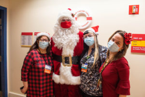 Ho ho ho! Merry Christmas from the halls of La Rabida! After a socially distanced celebration in 2020, we welcomed Santa Claus back to the hospital this year. With proper mitigation steps in place to ensure everyone’s safety, Saint Nick was able to celebrate with our patients and families in person yet again. Santa arrived at the Gem on the lake bright and early Christmas morning. With his bag of gifts in tow, Santa made his way from room to room to spread holiday cheer to our patients, families, and staff.